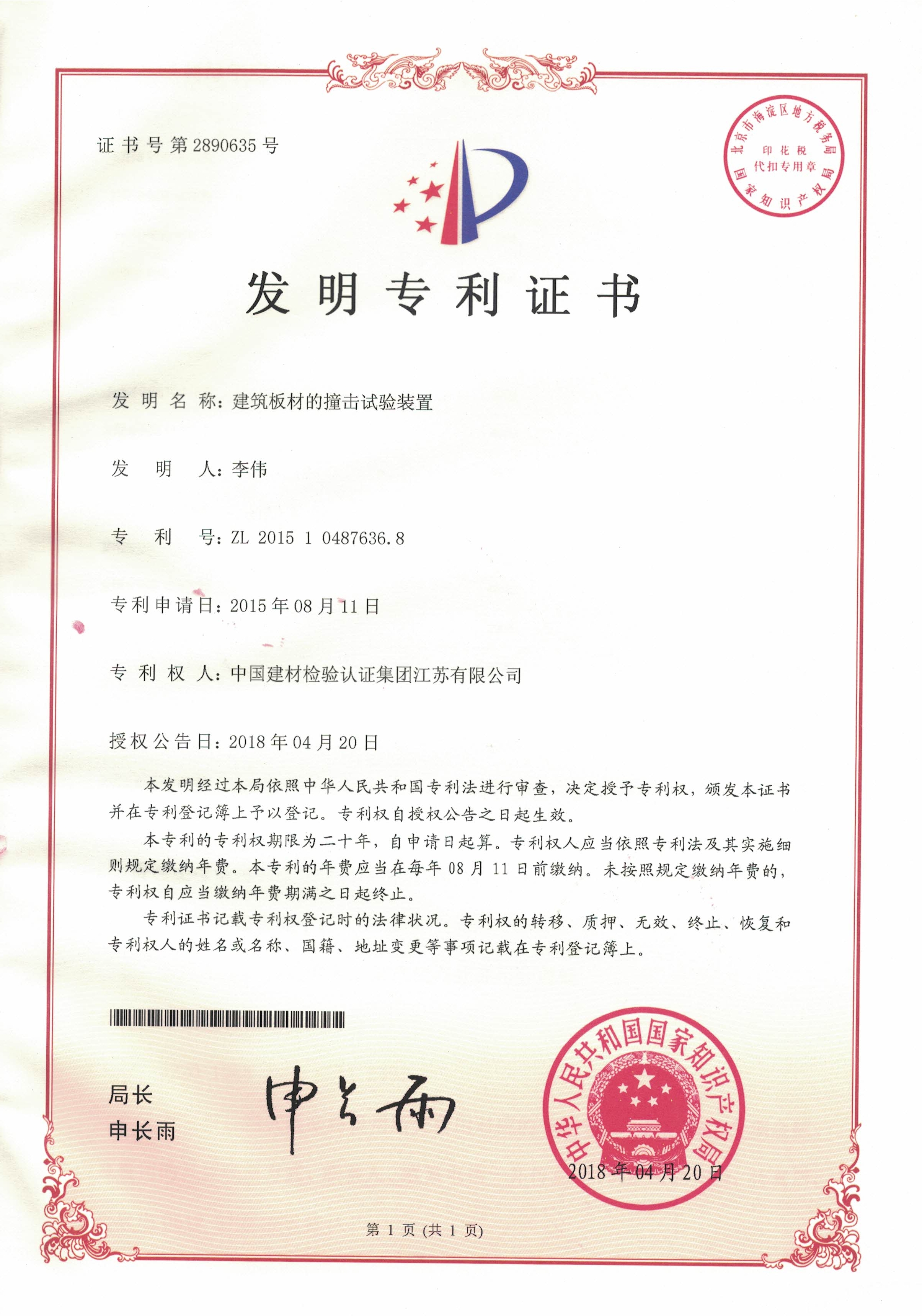 專利名稱:建筑板材的撞擊試驗裝置 專利權(quán)人:中國建材檢驗認(rèn)證集團(tuán)江蘇有限公司 時間:2018-04-20