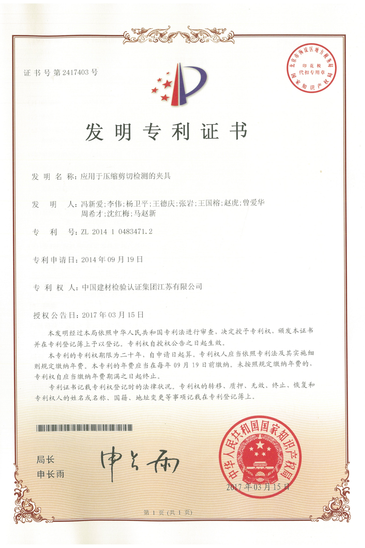 專利名稱:應(yīng)用于壓縮剪切試驗的夾具 專利權(quán)人:中國建材檢驗認(rèn)證集團(tuán)江蘇有限公司 時間:2017-03-15